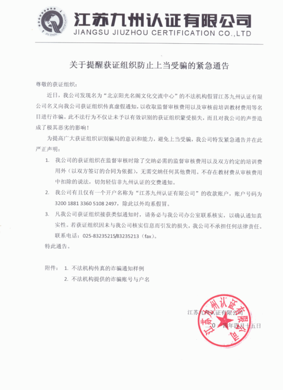 關于提醒獲證組織防止上當受騙的緊急通告/ Unclassified Documents